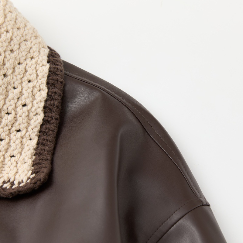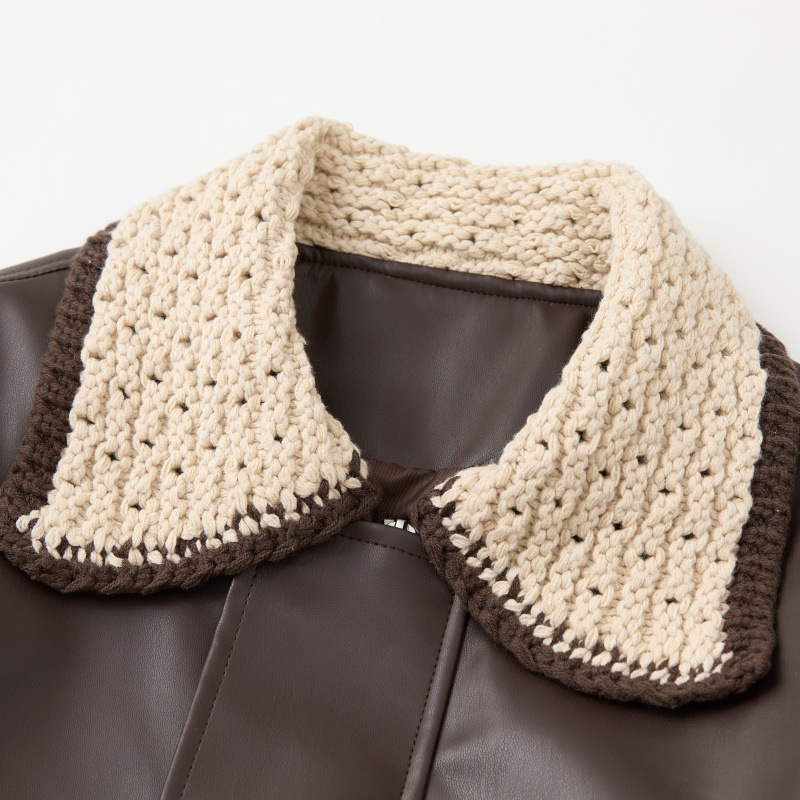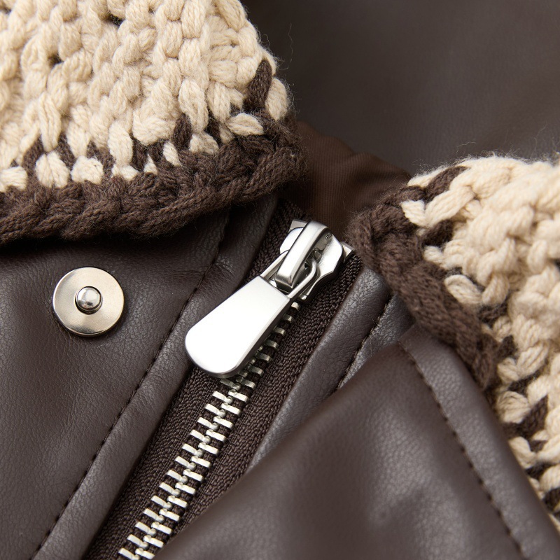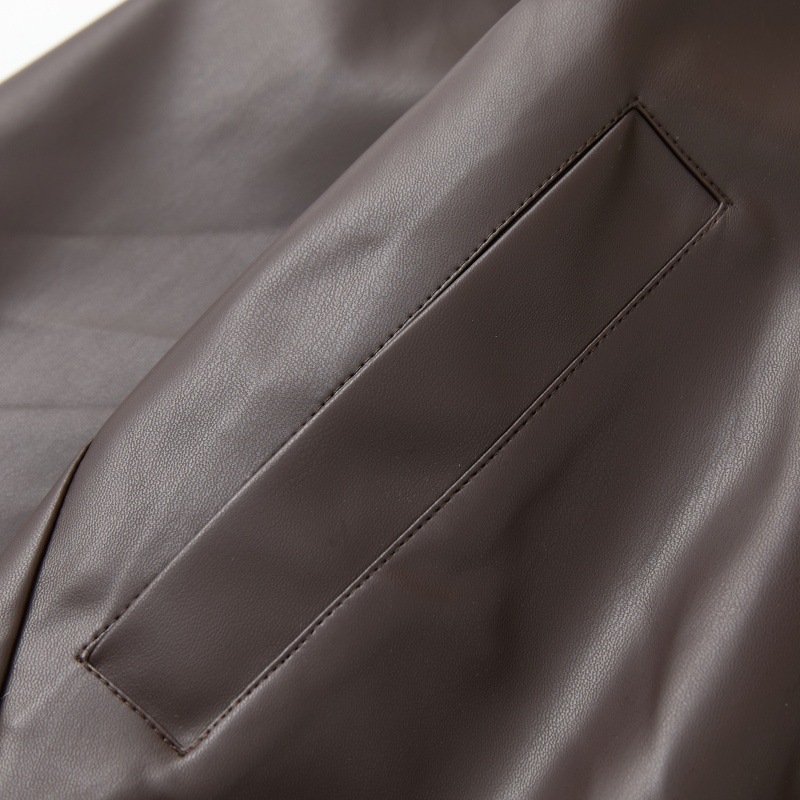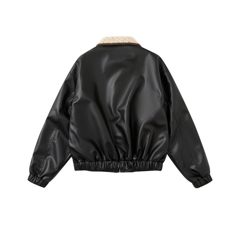 Color-blocked, Lapel-collar, Loose-fitting, Versatile, Trendy PU Leather Jacket For Couples
