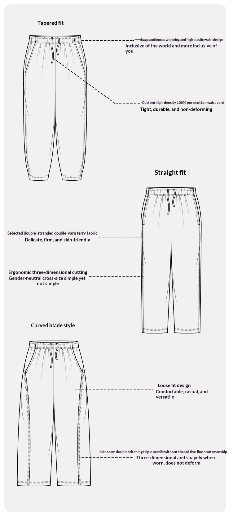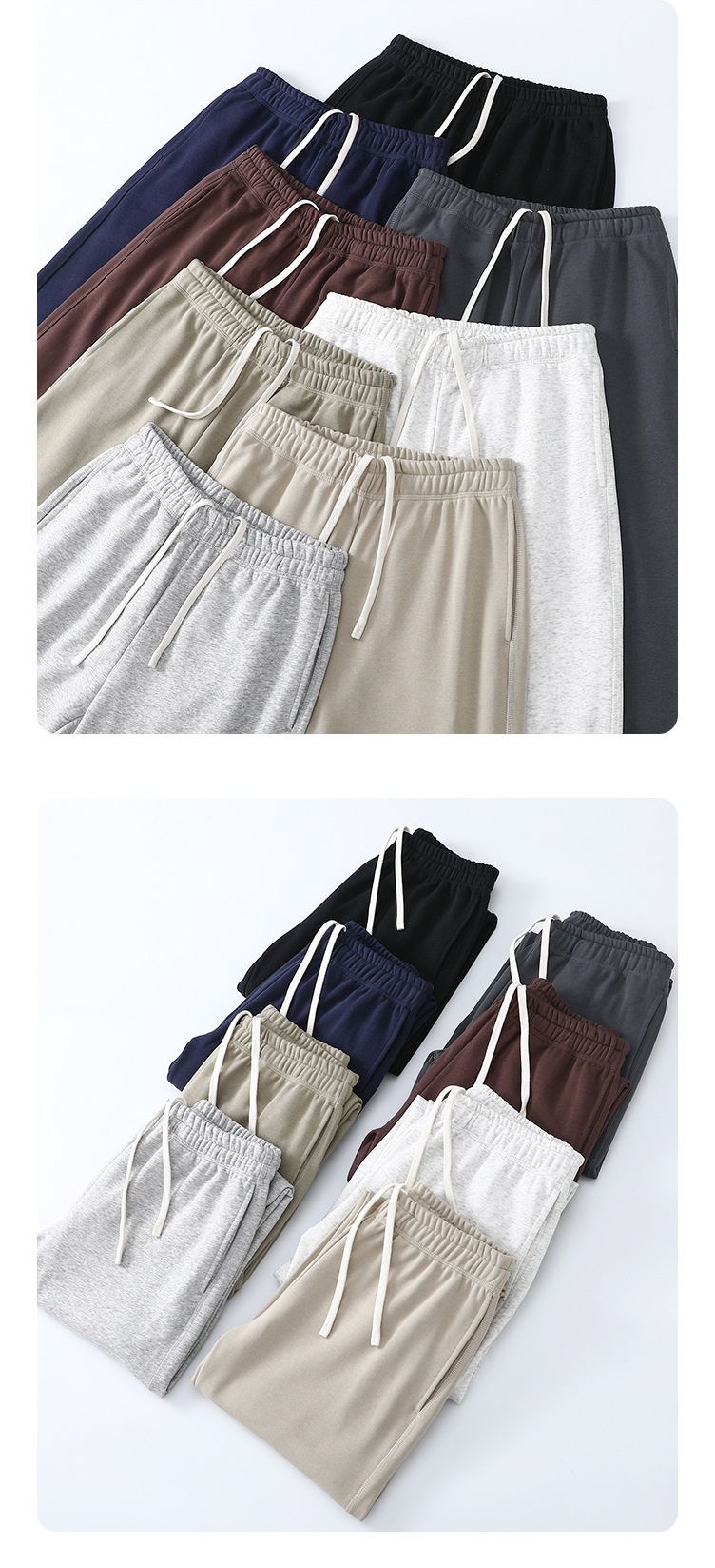 Colors: Light Heather Gray (straight leg), Heather Gray (straight leg), Beige Gray (straight leg), Gray-Green (straight leg), Plum Purple (straight leg), Navy Blue (straight leg), Charcoal Gray (straight leg), Black (straight leg), Light Heather Gray (cuffed), Heather Gray (cuffed), Beige Gray (cuffed), Gray-Green (cuffed), Plum Purple (cuffed), Navy Blue (cuffed), Charcoal Gray (cuffed), Black (cuffed), Light Heather Gray (loose cropped), Heather Gray (loose cropped), Charcoal Gray (loose cropped), Navy Blue (loose cropped), Black (loose cropped)