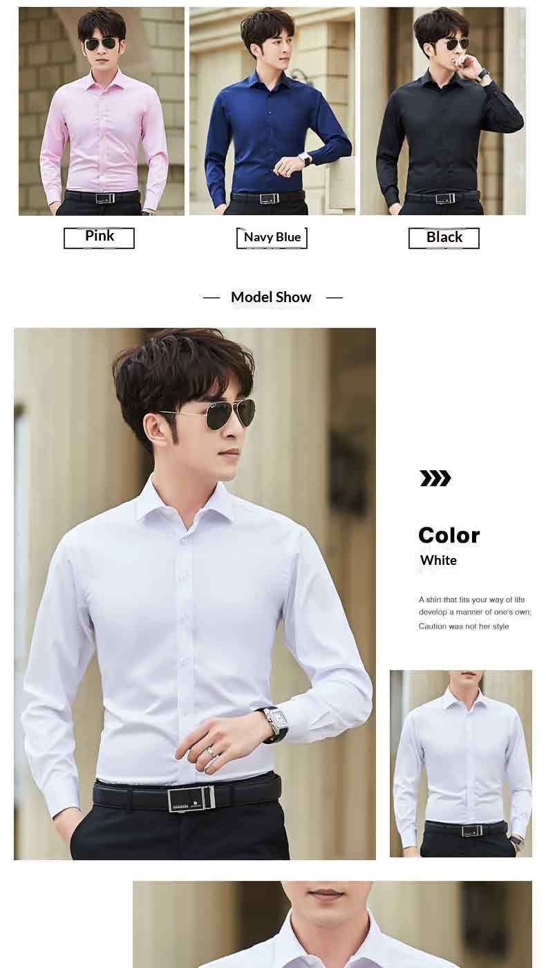 Color options: Navy long-sleeve shirt, blue long-sleeve shirt, white long-sleeve shirt, black long-sleeve shirt, pink long-sleeve shirt, burgundy long-sleeve shirt