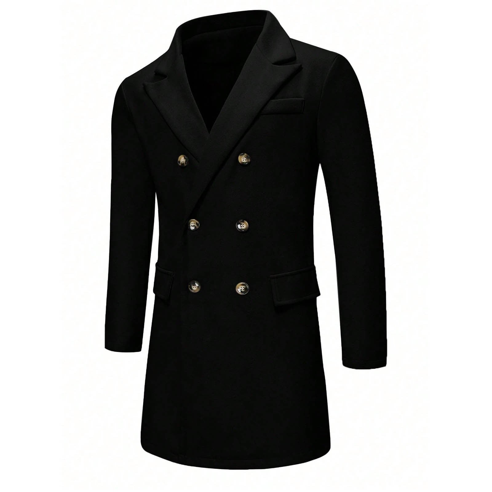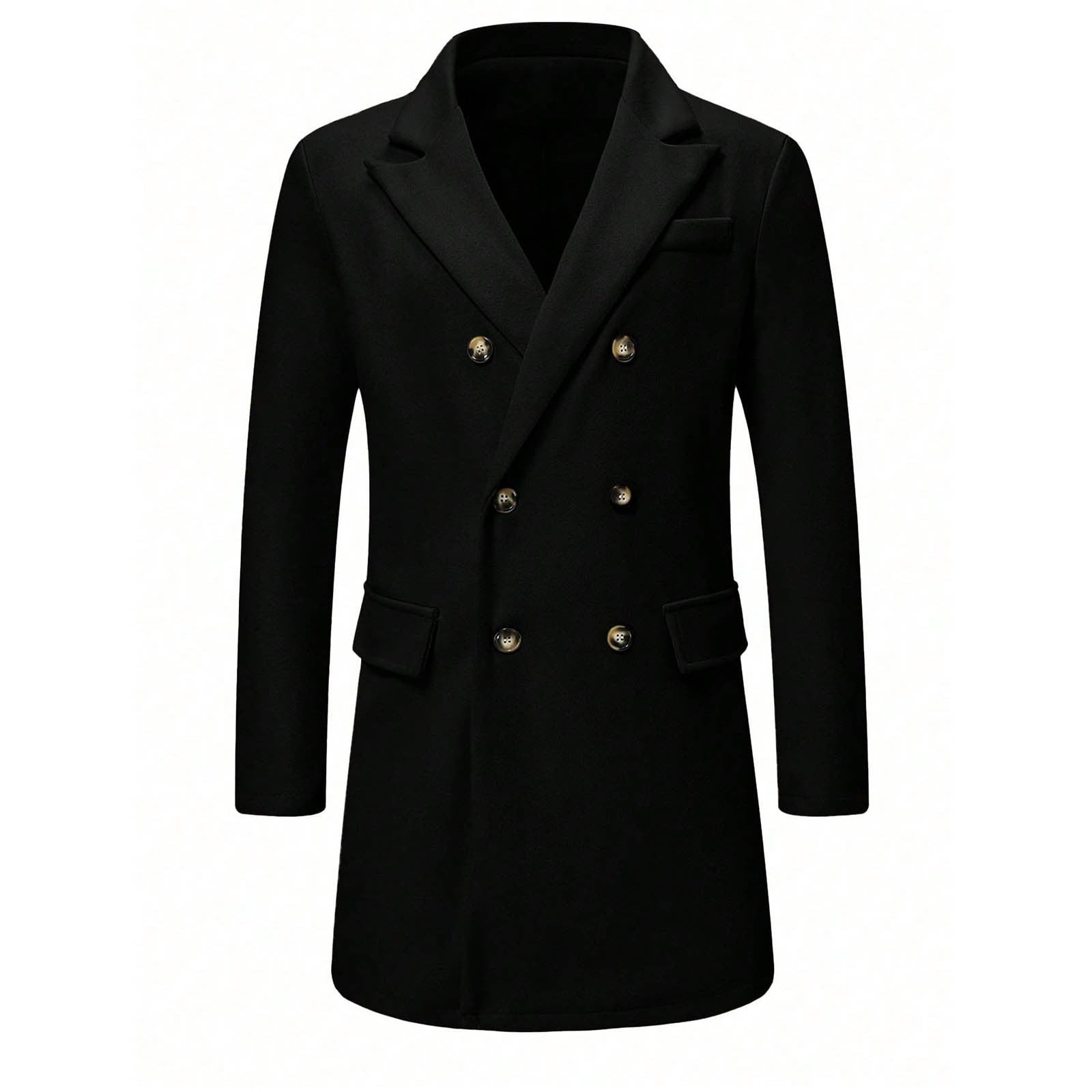 Men's Solid-color Casual Double-breasted Wool Coat