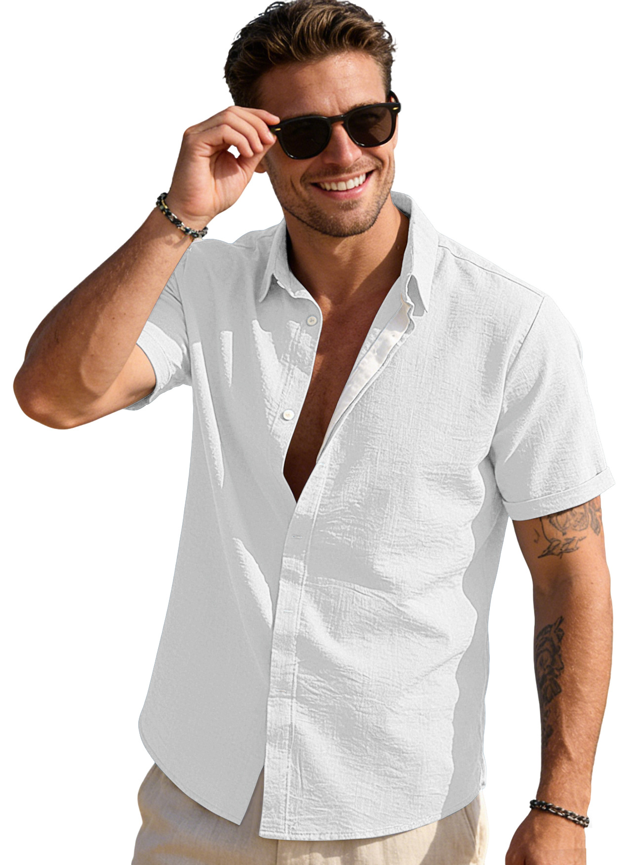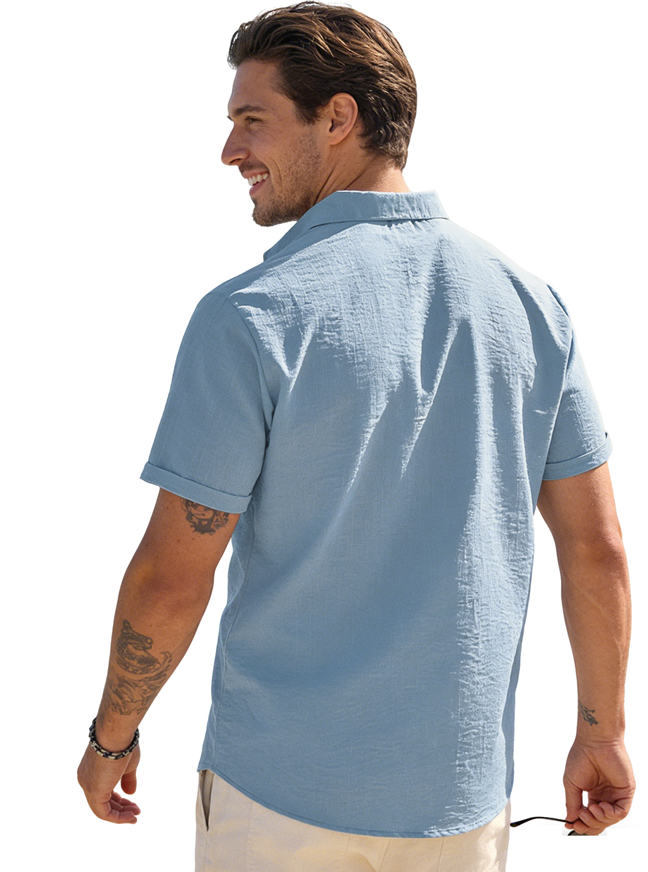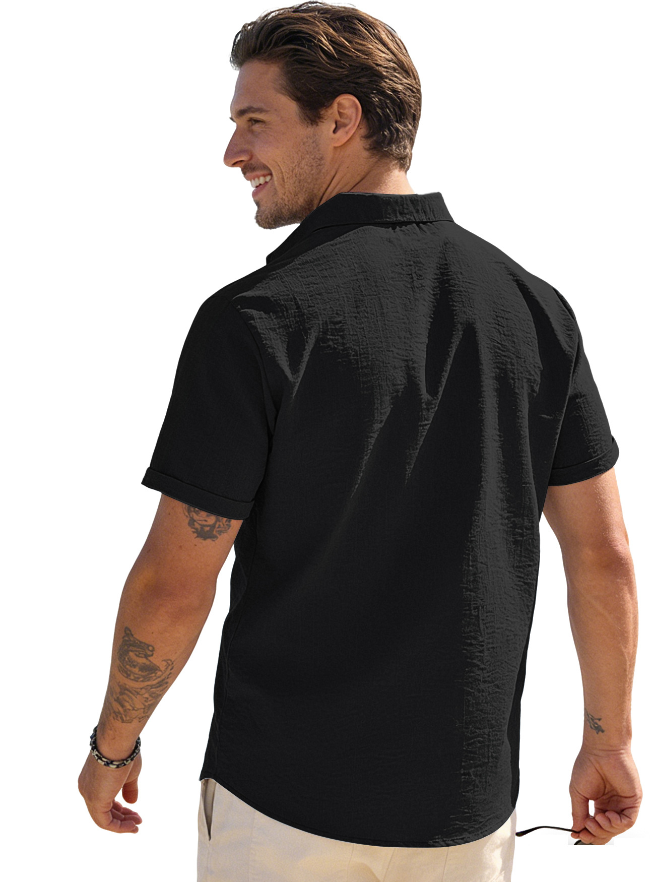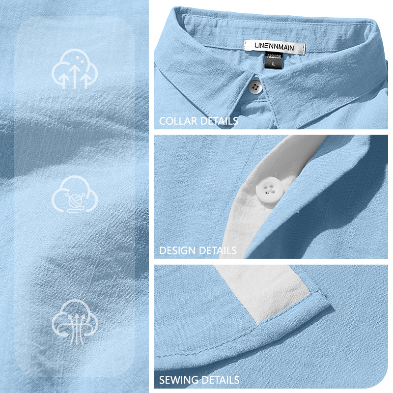 Mens Solid-color Short-sleeve Lapel Shirt Size S - 3XL