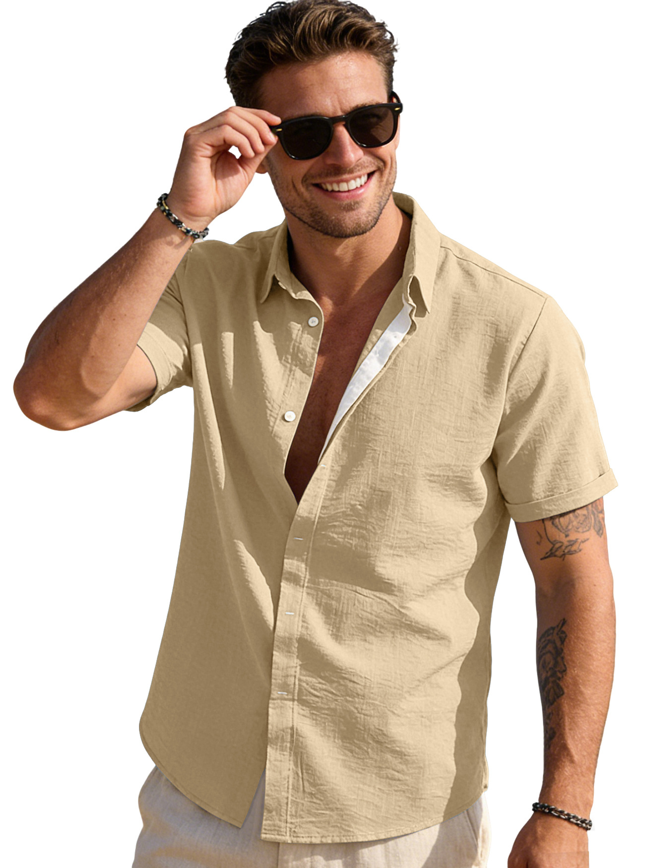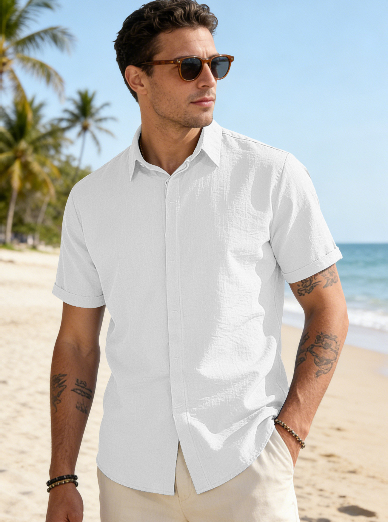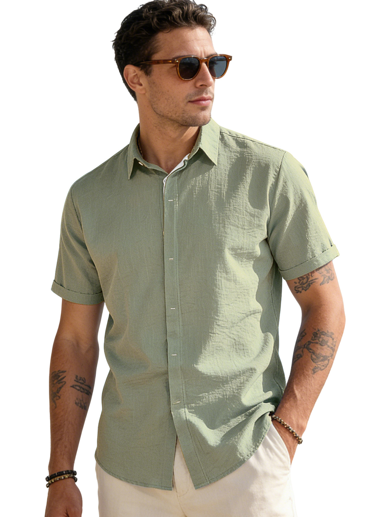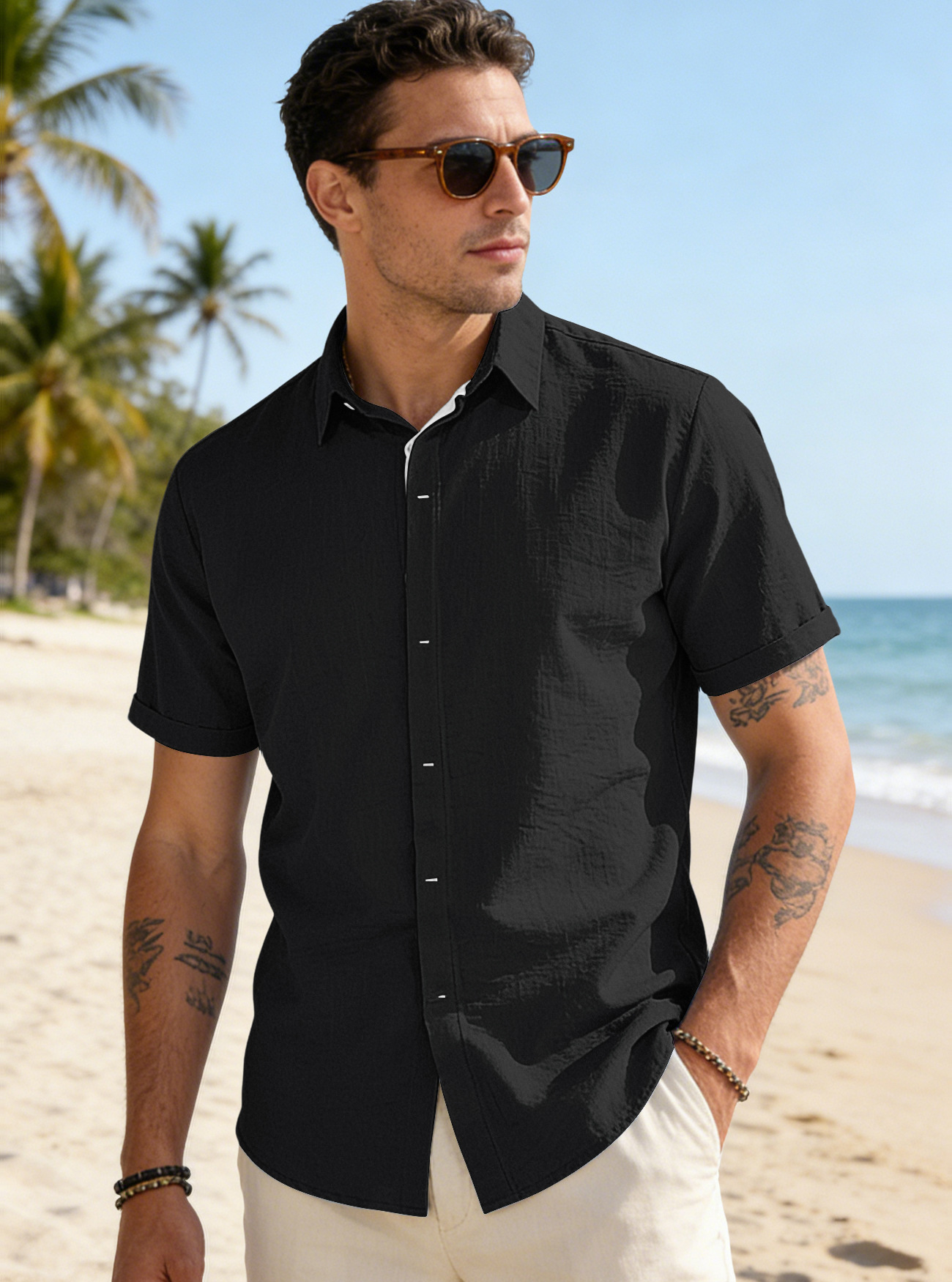 Mens Solid-color Short-sleeve Lapel Shirt Size S - 3XL