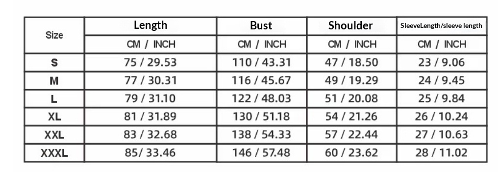 Size: S, M, L, XL, XXL, XXXL
