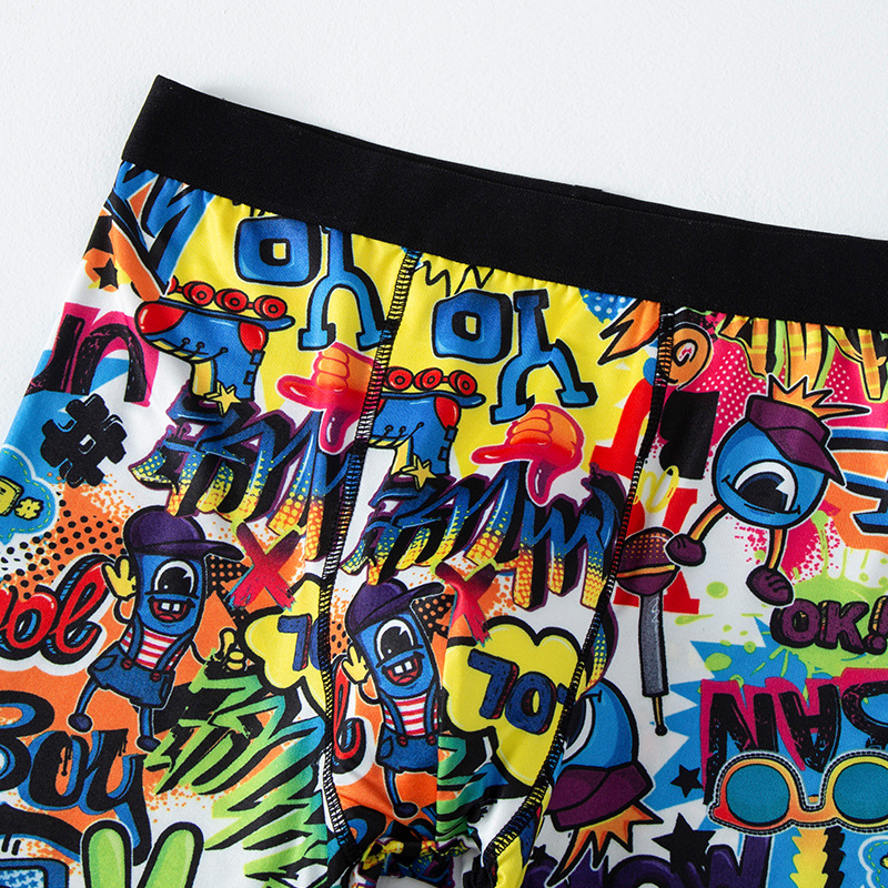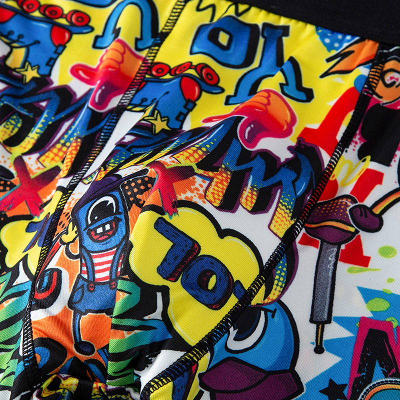 Polyester Men's Mid-waist Printed Underwear 6-piece Set