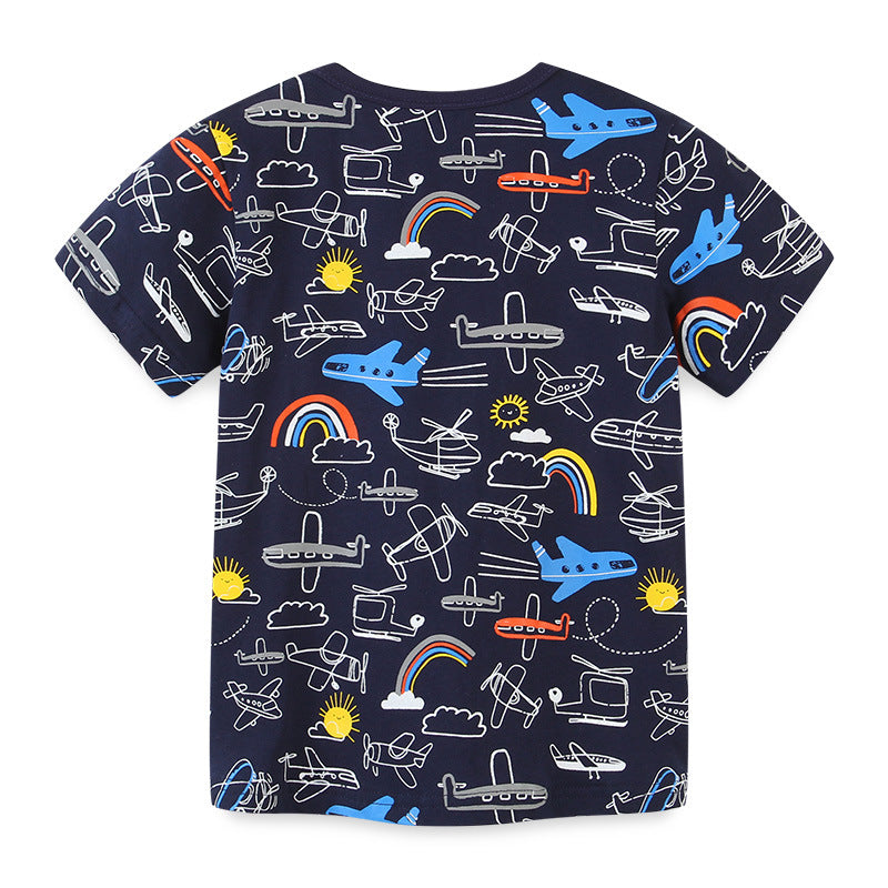 Summer Boys Round Neck Print Children's T-shirt Knitted Cotton Cartoon Top T